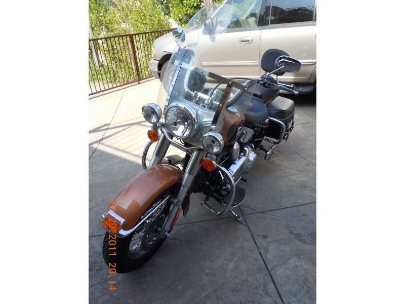 Price includes two helmets. Selling HD Heritage Softail Classic and She's SHARP!. Soft bags, removable windshield, crash bars. Fuel injected, 5 speed. Extremely nice condition. Well taken care of. Less than 2,000 mi. Easy to handle, comfortable front and passenger seat. Absolutely no mechanical problems. Never dropped or wrecked. No scratches or dents. One owner. Selling due to no time to ride. Located in Upland, CA.