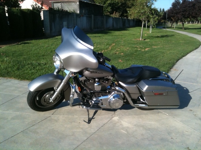 This is a 2007, Pewter Denim, Harley, Street Glide (FLHX). It has a 96 cubic inch motor with a six speed transmission. I have installed a K&N air filter, Vance & Hines True Duals headers and Vance & Hines Ovals slip-ons. It has a stock Harman Kardon AM/FM Radio with CD player and plug in for MP3, IPOD etc. It has 48,751 miles and has had regular maintenance by myself, Mathew's HD and HD of Fresno. The paint has some very minor blemishes but otherwise the motorcycle is in great condition. Please reply if you have a serious offer. Kelly Blue Book gives a value of $18,000. NADA (National Automobile Dealers Association) gives a range between $15,000 and $17,000. E-Mail me with your number and I will call you back.