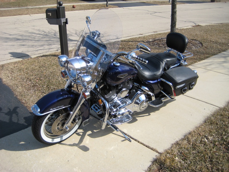 I am selling my HD Road King Classic. It is Cobalt Blue (purple hue) and just turned 10K miles this summer. When I purchased it there were 9700 miles on it and I was able to get 2 years of transferrable Harley Factory Warranty with it since the dealership knew how well it was maintained. The bike is basically PERFECT! I am really not exaggerating when it comes to the condition of this bike, people are blown away when they see that it is a '99. I know some of you have seen it the few times I got to ride it this summer and can attest to how clean it it. I am selling it because we recently picked up two puppies and combining that with graduate school makes it impossible to ride.