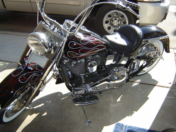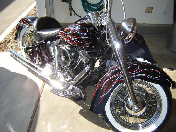 1993 Harley-Davidson Heritage Softail Classic Flstc, 1993 Heritage Softail, Custom Old School pinstripe flame paint job, custom rear fender, side mount iron cross taillight/license frame, 16 ape hangers, Vance and Hines Longshot pipes, adjustable lowering kit, wide whitewall tires, LePera bare bones seat. Included - Original rear fender with matching paint, passenger seat, extra touring seat (Pictured) $8,000.00 9512653078