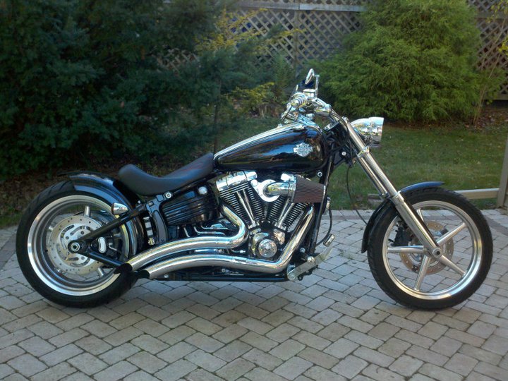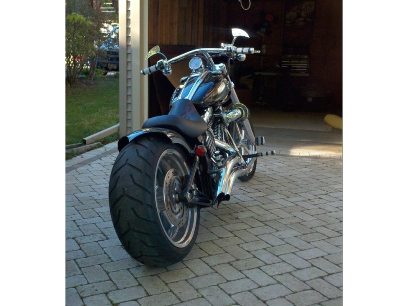 Monster 240 rear tire, Danny Gray solo seat, Vance & Hines big radius pipes, Carlini chrome drag bars, custom rear fender, LED light kit, all SS braided lines, upgraded pegs, grips, mirrors, light covers, alarm system, custom skull key, you name it, it's got it. Runs mint. I have all stock parts as well including Rocker 2 up seat.
