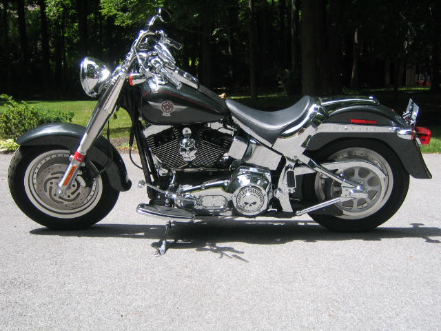 2006 Fatboy, Low miles and tons of extras. Screamin Eagle chrome Solo Seat (stock 2-up seat included) vance and Hines Big Radius pipes, HD skull Collection and HD Flame Collection on foot pegs/boards, mirrors, handgrips etc.. Never been dropped, always garage kept.