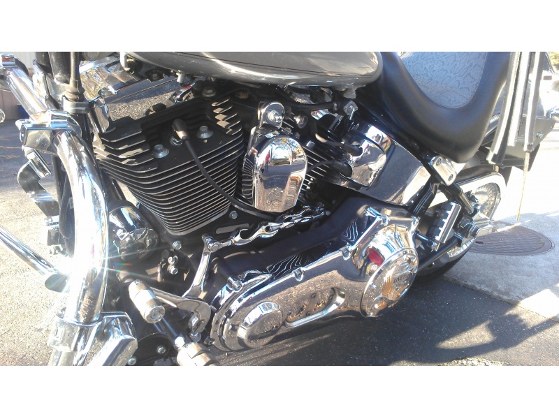 This is a beautiful 2000 Harley Soft Tail Deuce is has only 33k, bike is in great condition and has only minor to small scratches on exhaust only. Bike had slight front end damage, had professional install on tubes, rim and fender. This Soft Tail has brand new tires, brakes, battery and exhaust also includes Harley bags as shown in main pictures . Its loud fast and fun to ride this is a cruiser and a head turner. Has all Harley Chrome "Live to Ride, Ride to live" Bike has been greatly taken care of maintenance and tune ups as well as oil change done. This is a salvage title that had only front end damage and was carefully restored to original showroom condition, there is no physical appearance stating otherwise. Why pay top dollar when you can have this Harley. Will consider offers and any questions please feel free to email, thank you for your time and happy bidding