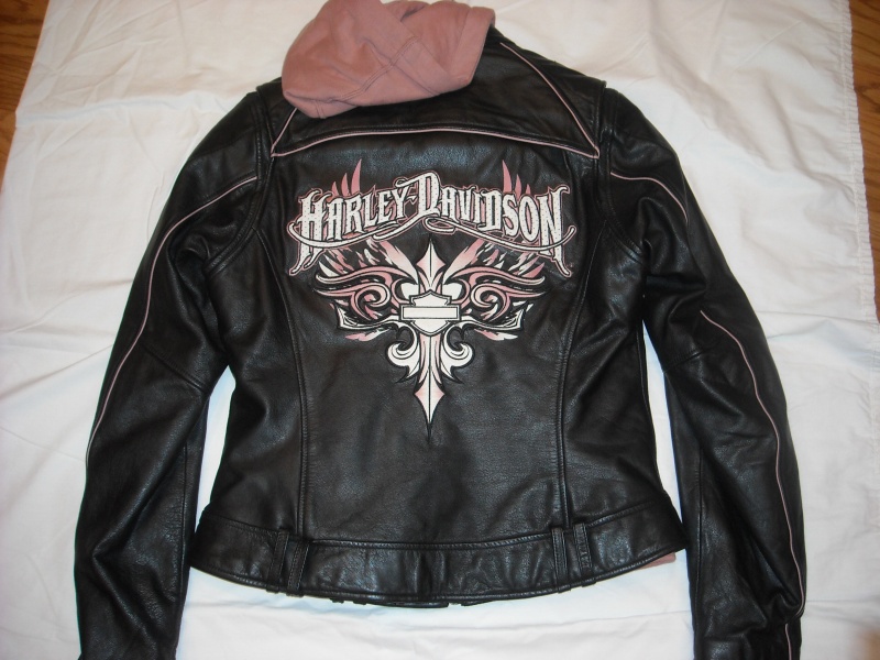 This is a super cute set of chaps and jacket both size small. The full leather jacket has a pink sweatshirt lining that can be removed. This set has been worn maybe 5 times. It is in nearly new condition.