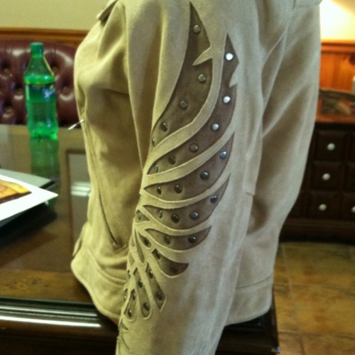Inlay on both sleeves. Studs on breast pocket. The Harley Davisson logo on the left pocket. Size small. From a smoke free home. Very unique and beautiful jacket. Beige suede jacket size small. worn once. From a smoke free home.