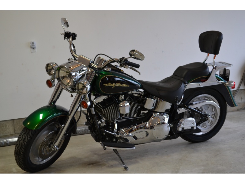 2006 FATBOY 5520 MILES, DRAGONFLY GREEN & VIVID BLACK PAINT, SCREAMIN EAGLE II SLIP-ONS, NEW REAR TIRE, ROAD KING HEADLIGHT CONVERSION, CHROME FRONT FORKS, LOTS OF CHROME
