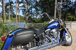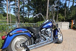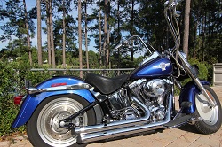This is the last carburated model of the Fatboy. It has the stage 1 kit installed, V&H Big Shots, 16" apehangers w/internal wiring, lots of chrome, quick release saddlebags, Mustang seat w/removable driver backrest, kuryakyn cruise pegs and foldable luggage rack and much more! Also included will be a trickle charger, breathable storage cover and three helmets as well as all of the original components.