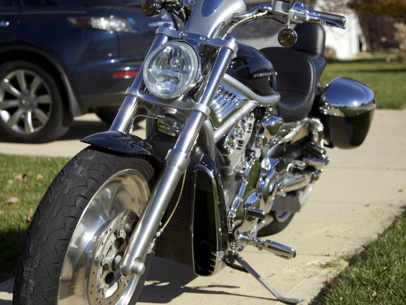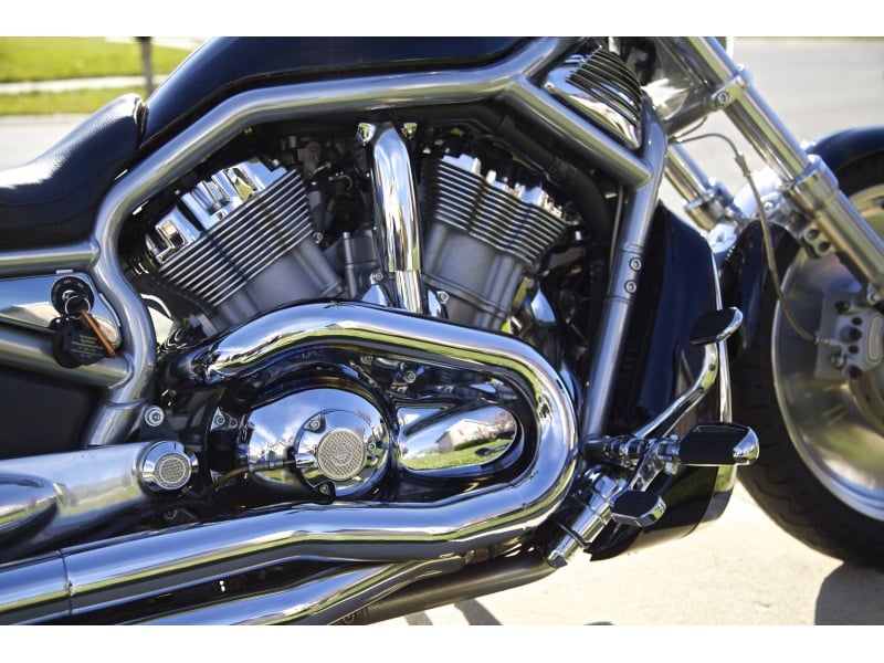 2004 VRSCA, 19862 miles. Garaged it's entire life and maintained to manufacturer standards. Has had it's 10k miles service overhaul at an HD dealer. Lot's of chrome, in fact, there is only one after market piece available to ad to the bike and that's the upper belt guard. Otherwise, it's completely chromed out. Gloss black color with solid aluminum wheels, straight pipes and a performance module installed and fully functional. Color coordinated hard saddle bags with chrome locking lids. Quite the performer that sounds awesome with the straight pipes.