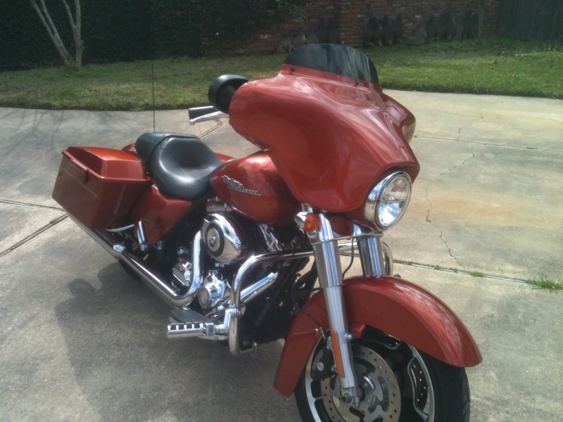 Sedona Orange Street Glide. All stock except for Hog Tunes speakers and amp.