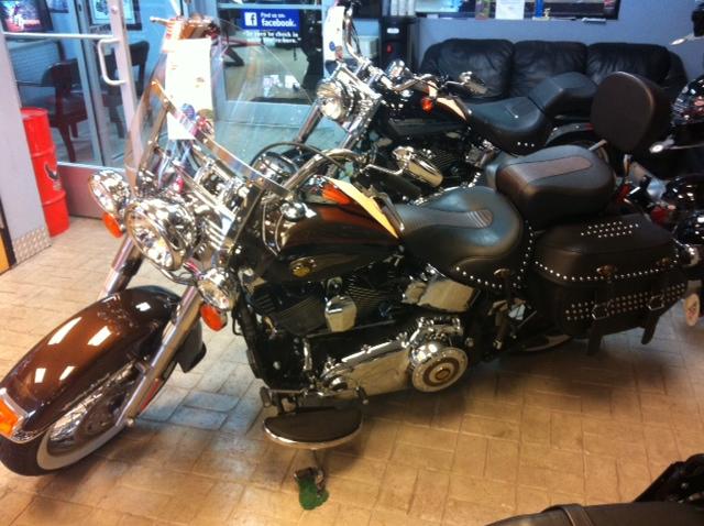 Perfect Heritage softail w/ ABS and Security package ($1,195 add-on), windsheild, bags. Why buy new? This one is flawless!
