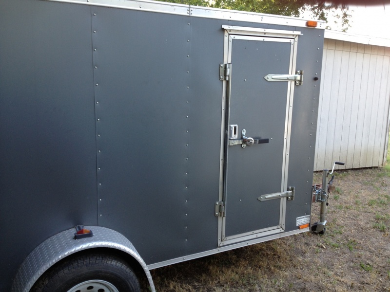Used motorcycle trailer with new tires. Back ramp is extra heavy and the inside floor has been sprayed with bed liner for non slip footing. Tie downs and wheel chock included.