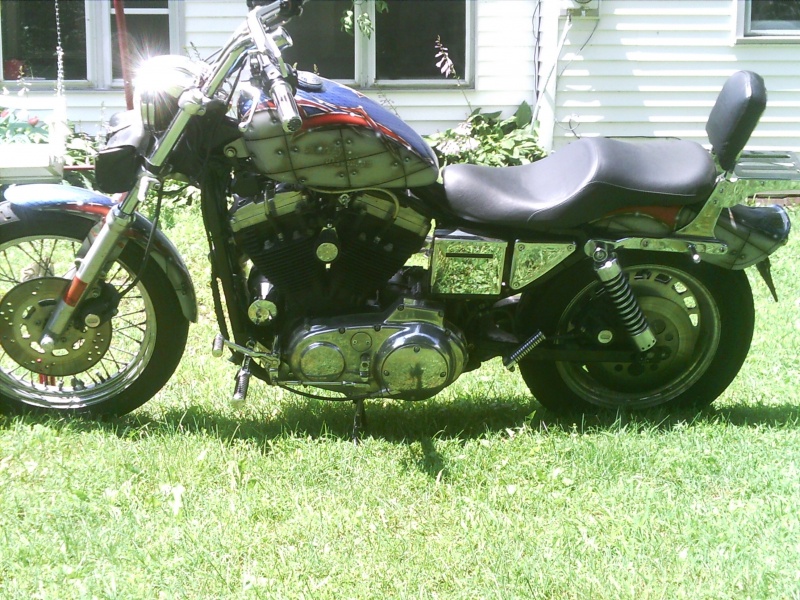 For Sale: This Harley was purchased new by us in 1999, In 2004, 1999 frame had some rust replaced with a 2002 frame(titled 2002, not r-title) (have original receipt of $7299. and paper from state insp. etc) we've put about 20 thousand miles on it(about 4thousand since rebuilt), and at last count about $15,000. into it, had head work done valve's etc. bored with wisco pistons, hasting rings, andrews cams, v-thunder lifters etc, very nice custom paint, 2 1/2 in shotgun pipes, led oil temp dipstick with warning light, 21/4 T-bars wires run inside, 2 inch speedo white face blue light, this bike is very quick and loud, probably not a good beginner bike, never had it dyno tested/tuned, low profile seat with driver/passenger gel in seat, tires have about 5-600 miles harley dunlap's, synthetic oil's, new brakes(in package) ones on bike about half, 8 switch programmable ultima ignition, Heavy duty 12" rear shocks, lowered front end with PJ1 oil, LOT's more, prefer NOT to ship, welcome to come inspect (needs a good detailing) we've entered it in two shows(cause we didn't want to walk and won 1st place and a 2nd place, I don't consider this a show bike, just pride in my ride) [email protected]