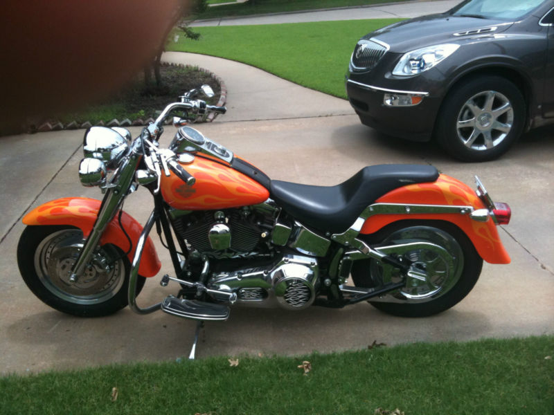 THIS CUSTOM HARLEY FATBOY IS SHOWROOM QUALITY WITH ALL THE CHROME. CUSTOM 2005 HARLEY SKINS. FLAME PACKAGE. SANTEE PIPES. GUNSLINGER SEAT. TOUCH OF LED LIGHTING. THIS BIKE IS SHOW READY AND GETS ALL THE LOOKS. TURN HEADS WHILE RIDING IN STYLE. KEPT COVERED IN GARAGE WHEN NOT ON ROAD. QUICK DETACH WINDSHIELD AND QUICK DETACH BACK REST INCLUDED AS WELL AS HARLEY COVER.