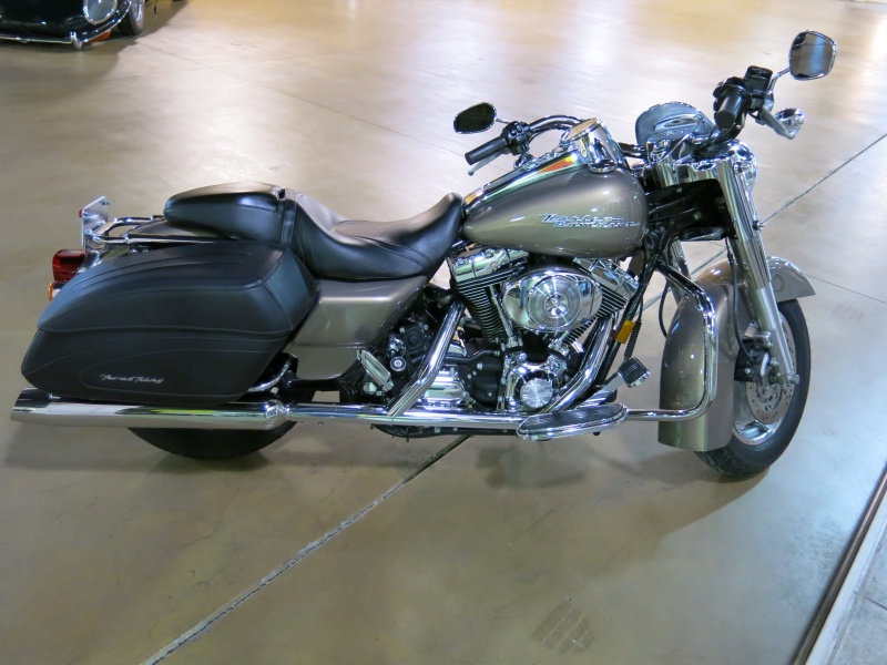 2002 Harley Davidson Road King FLHR Custom (VIN: 1HD1FYW184Y737129), custom smokey gold exterior paint with a 5-spd. manual trans. and 18,770 original miles - the bike is powered by a Vibration-isolated Black and Chrome Twin Cam 88® Engine with electronic fuel injection & belt drive. This is a very clean Road King optioned with cruise control, removable windshield, passenger seat backrest, triple disc brakes with cross drilled rotors, air adjustable rear suspension, alarm system with remote, one piece tooled leather seat, leather wrapped hard saddle bags and more. Fully serviced, cosmetically excellent and ready to ride! The Road King Custom draws its styling cues from storied Harley-Davidson® motorcycles of the past. With fat tires and gorgeous leather-wrapped hard saddlebags that retain their shape mile after mile, this motorcycle turns heads. The fender tips and seat valance boast a unique, chrome Road King® Classic three-dimensional emblem for added style. This bike is offered for quick sale at $10,900.00 / best offer.