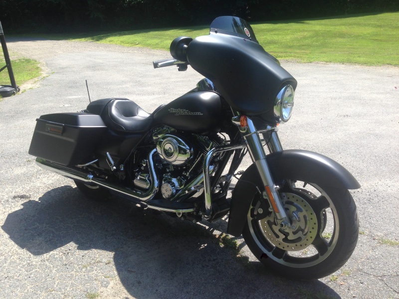 Awesome 2013 Black Denim (Matte Black) Street Glide with 103 Package which includes 6 speeds, ABS, Electronic cruise control and engine disabling alarm. Upgraded to Hog Tunes amp and speakers, shorty antenna, removable back rest. Includes 2 key FOBs, smart phone handlebar holder, removable Harley soft bags that fit inside hard bags, heavy duty full dresser cover and manual. Always used synthetic fluids and high octane fuel.