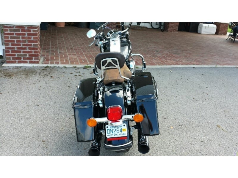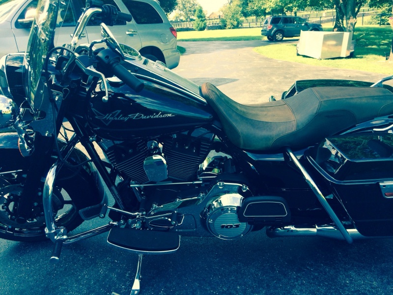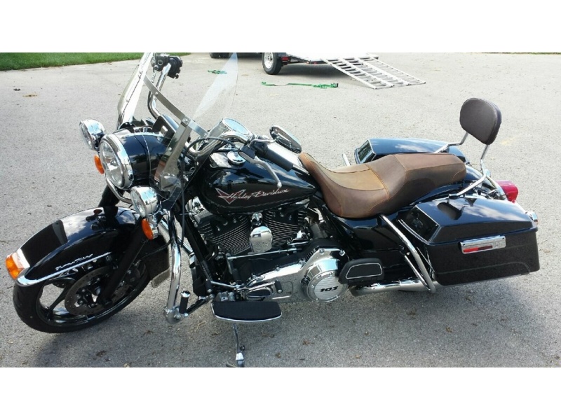 Nice black Road King. 17 inch black screaming eagle wheels. Aftermarket breather with screaming eagle racing tuner kit. Custom outlaw brown leather seat! Rinehart racing pipes. Bike sounds amazing. 6k invested.