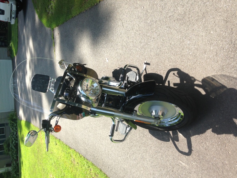2005 Harley Davidson Fatboy for sale. Anniversary Edition. 95 cubic inch engine. Custom Vance Hines exhaust. 21 inch wind screen. Front engine guard/highway bars. Leather saddle bags. Extra sissy bar. Less than 19,000 miles. Stored in garage.