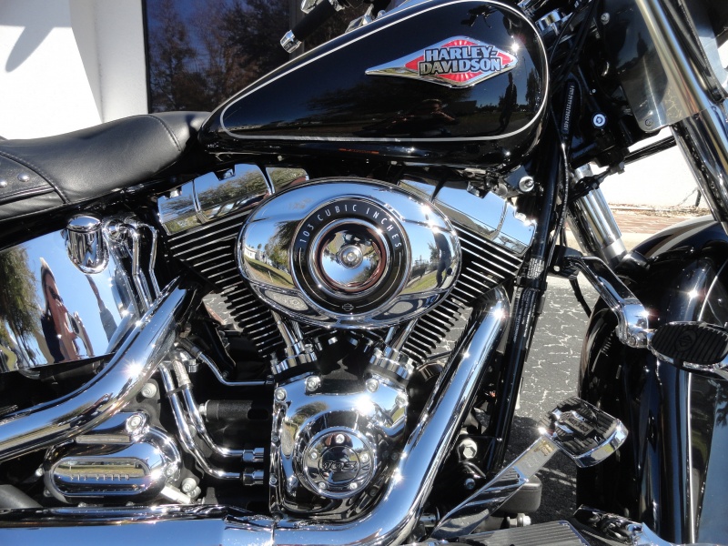 The Harley® Heritage Softail® Classic model features a powerful air-cooled Twin Cam 103 Harley® engine with 6 speed cruise drive transmission