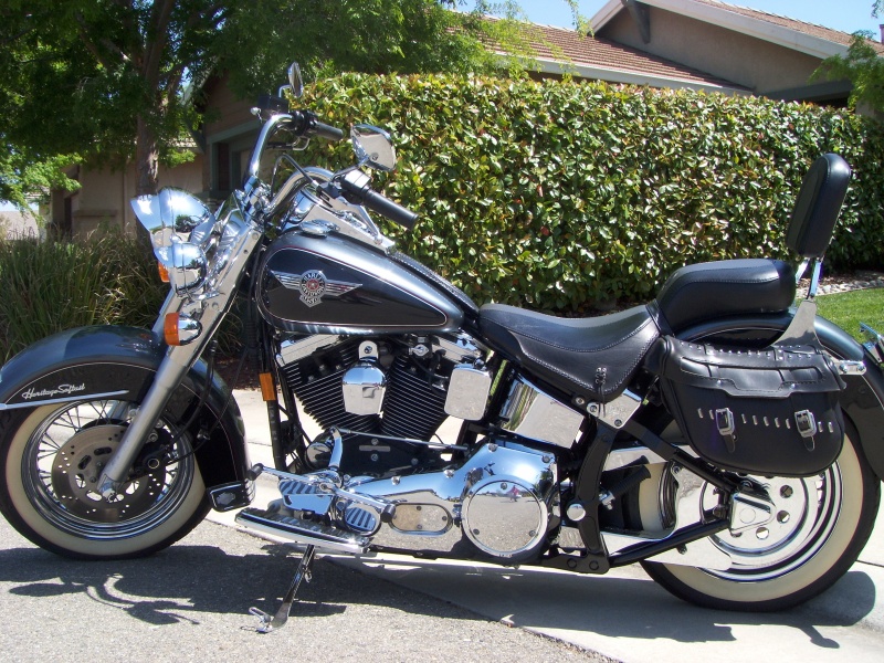 1995 HD Heritage Softail FLSTN Nostalgia 13,625 miles Charcoal satin and vivid black paint with red & white pin stripes. Upgrades include EV 27 cam, Screamin' Eagle Air cleaner kit, additional low profile fender seat, passing lamps with visors, axle covers, chrome lower belt cover, chrome floorboard kit, rear wheel sprocket cover, chrome front fender skirt and more.