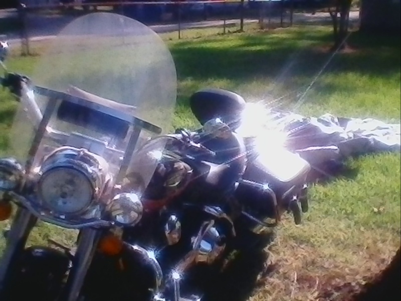 Has cruise control, whitewall front tire, both tires have good tread, spoke rims.