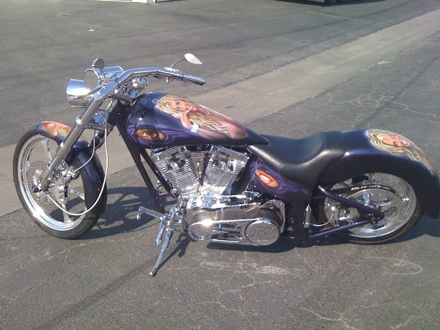 Pro-street, 113" S&S, S&S carb w/ velocity stack; Baker 6 sp; 2"strch/38° rake; PM wheels 21" frnt/17" rear w/ Avon 190/50; 6 piston PM Brakes; PM polished rotors/pulley; PM controls w/stainless lines; Legend adjustable air ride, paint by Mike Learn, Fantom tail lit; Frenched lic plate; Alum 1 piece fuel tank w/ flush cap; inverted forks w/6 degree head, internal throttle, , Riviera pro clutch; PM forward controls w/2" stretch; Twin Sampson exhaust; Yaffe mirrors; spare parts; ONLY 2200 miles. 600 mi since disassembly clean and refresh paint, polish, chrome. You will not find another bike like this one. A true one of a kind with no detail missed. This bike cost $5K to build. Illness forces sale. $19,500 firm.