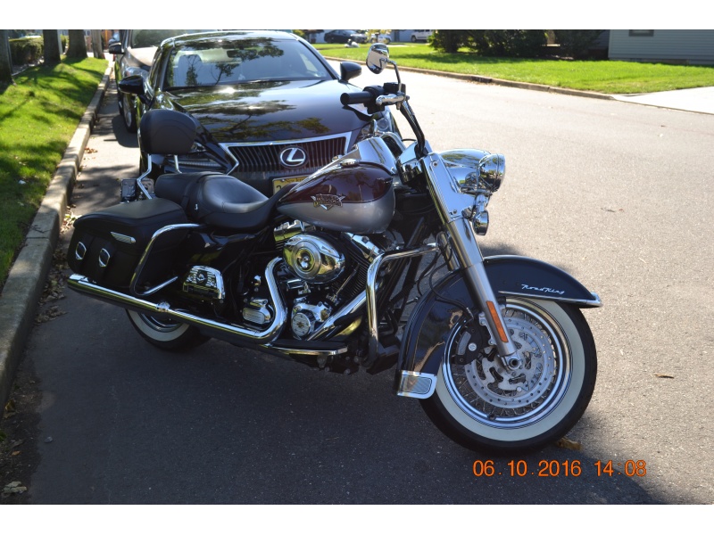 Take time to explore all of the 2012 Harley-Davidson® Road King® Classic FLHRC features including its detachable Harley® windshield. The bike is powered with a rubber mounted Twin Cam 103™ motorcycle engine that gives you the power you need for passing, hill-climbing and performance when carrying luggage or a passenger. An important feature of touring motorcycles is the saddlebags. The Harley® Road King® Classic saddlebags are leather-wrapped injection molded hard saddle bags that maintain their shape over time. This Harley® touring and cruiser motorcycle all in one also has an air adjustable touring rear suspension, giving the choice for a variety of riding feels. Be sure to learn more about these and all the other features on the Road King® Classic, including its detachable Harley® windshield.