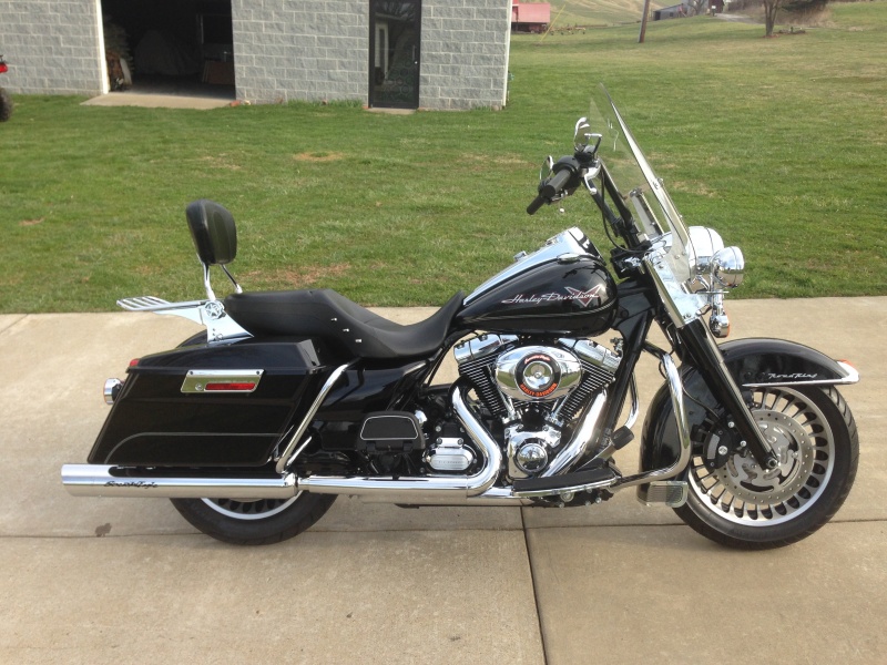 2012 Harley Davidson Road King. 103 cubic inch motor, 8,128 miles. Screaming eagle tru dual exhaust, with dynojet tuner. Cruise control. New tires. 10" black HD handle bars. Black forks and sliders. Great Shape.