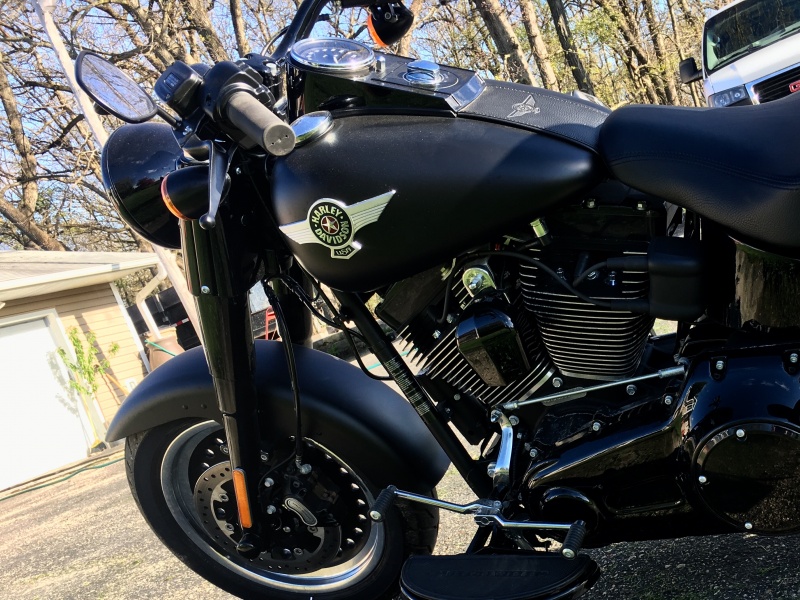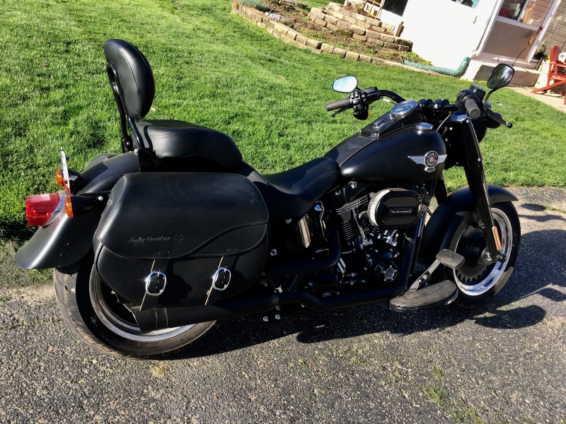 2016 Harley-Davidson FLSTFBS - Fat S, YOU ARE LOOKING AT A 2016 HARLEY DAVIDSON FAT BOY S (FLSTFS) WITH ONLY 923 MILES ON IT. IT IS DENIM BLACK IN COLOR AND POWERED BY A 1803CC (110") FUEL INJECTED ENGINE AND 6 SPEED TRANSMISSION. THE BIKE COMES WITH ABS BRAKES, CRUISE CONTROL, 1 REMOTE, AND FACTORY SECURITY SYSTEM. SCREAMING EAGLE EXHAUST, SEAT WITH BACKREST And SADDLE BAGS HAVE BEEN ADDED TO THE BIKE. THERE ARE NO SCRATCHES, DENTS, OR DINGS THAT I CAN FIND. THE CHROME AND ALUMINUM ARE IN GOOD CONDITION. THE TIRES HAVE GOOD TREAD ON THEM.