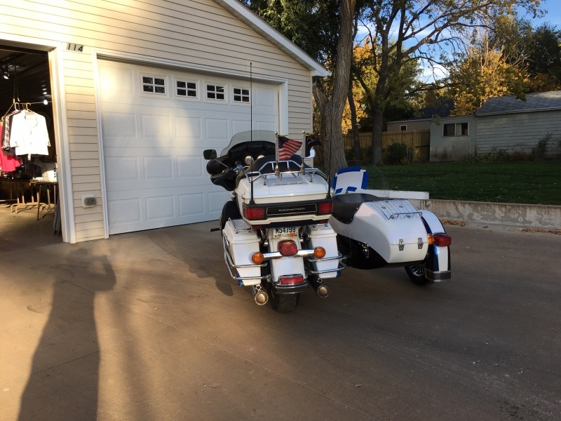 2010 Harley Davidson Ultra LTD with 2013 Motivation brand Side Car. Bike has 80,000 miles, Side Car about half that. Tires have 5000 miles. Bike has reverse gear and adjustable Heli Bars on handle bars. Great condition, always kept in garage when not on road. (Flags not included) Call Jim at 605-220-2090 for more info.
