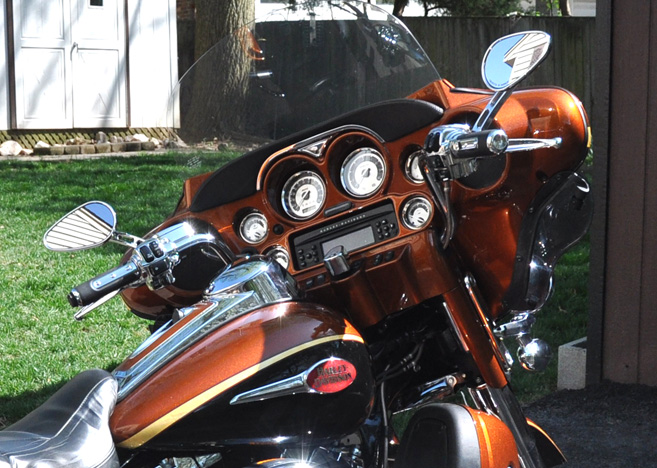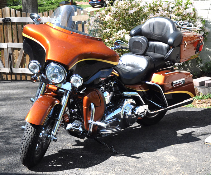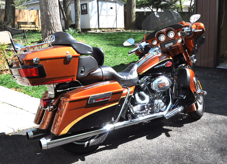 Custom Screaming Eagle paint colors: copper, black and gold.
