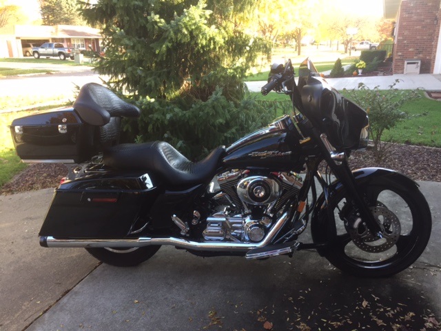 Last of the 5 speed tourers but fuel injection lets you just jump on and go, no matter the altitude or climate! Hard to part with this toy but working so many hours at my job, I only rode once last summer and a handful of times the previous 4 summers…time to let someone give her the ride time she deserves. Some custom bikes have so much stuff on them they are not comfortable to ride but the goal was to give this a custom look without going overboard from a ride ability standpoint. This is a multiple show winner over the years and is perfect in every way. It has always been stored in a heated garage and under cover. Has only seen rain once when we got caught in a pop-up storm. Full synthetic lubricants since first oil change. The engine, lights, and a couple other things are chrome but blacked out everywhere else gives her a sweet but sinister style. Pictures do not begin to do this bike justice! I am the original owner. The title is clear and the reserve is reasonable for a bike with this low mileage and this level of customization. The bike is also listed on Craigslist, as well as locally. Seller reserves the right to pull the bike upon the first accepted offer and down payment.