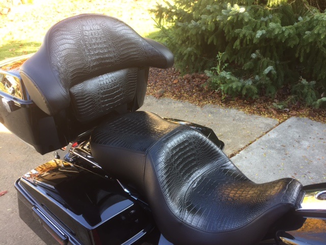 Faux Snake Skin Covered Reach Seat and Matching Seat Back for Tour Pak ($200)