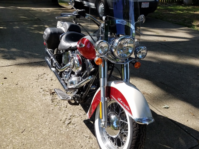 This bike is new condition. Demountable windshield,windshield pouch,USB charger,2 Harley Helmets, full rain suit,saddler bags with extra luggage bag.3-part riding jacket.