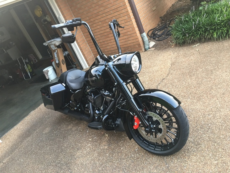 Aftermarket LED front signal lights, HD radial front fender, red HD calipers, HD Diamond Black grips, HD chopped engine-guard, KST 16' Black Apes, aftermarket front headlight nacelle, and HD flush gas cap & fuel gauge, S&S 4.5 slip-on exhaust. All add-ons did at the dealer.
