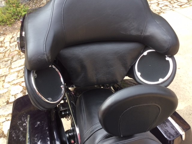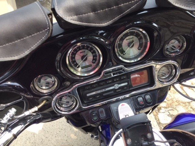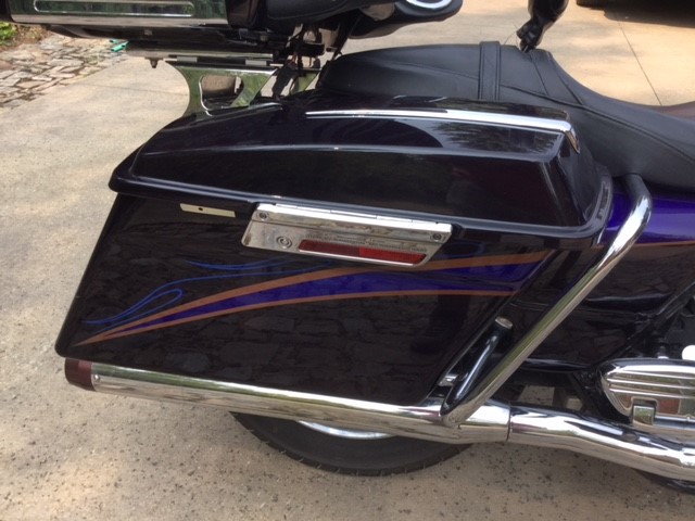 heated grips, push button fuel door, electric gear horn, break light modulator, turn signal mirrors, tour pack, custom speakers/amp, highway pegs, custom chrome wheels. Wired for iPod, iPhone, Stick. Bike is in excellent condition.