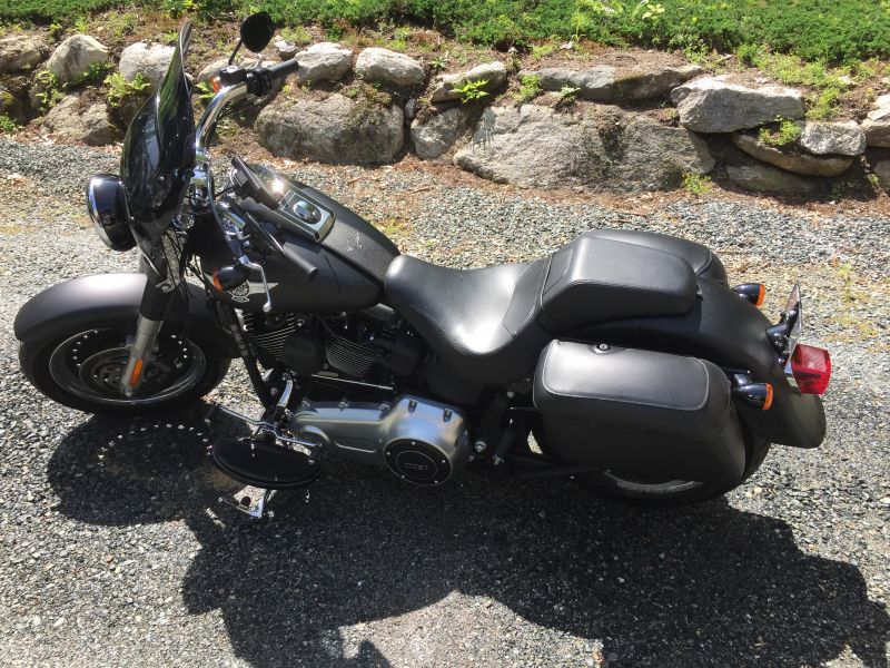 That's right, just 752 miles on this 2014 Fat Boy Lo, garaged in Tucson and now in Chester, Vermont. Black denim with SS, ABS, king size smoke windshield, new saddle bags, windshield pouch, GPS. Excellent, like new condition. Original owner with clear title.