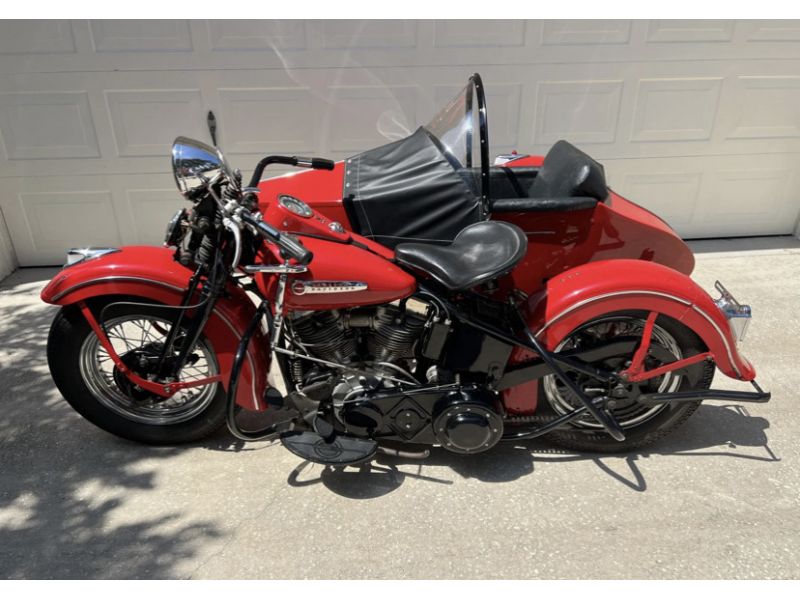 It was refurbished in red in a project that culminated in 2007, at which time it was acquired by the seller. Equipment includes a Schleber carburetor, a springer fork, drum brakes, a foot-operated clutch, a hand-shifted four-speed transmission, braided electrical wires, and a six-volt electrical system. This 1948 Harley-Davidson FL is powered by a 74ci Panhead V-twin paired with a four-speed transmission. The attached sidecar is equipped with a clear windscreen, a black vinyl tonneau cover, a drum brake, and leaf-spring suspension. Work in March 2023 included rebuilding the carburetor, replacing the petcock and ignition points, and adjusting the clutch, drive chain, and ignition timing.