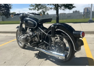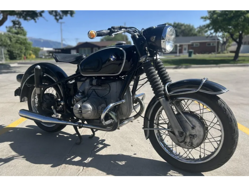This 1962 BMW R60/2 was fitted with a replacement R75/6-sourced 745cc opposed-twin under previous ownership, at which time the bike was also modified with a later-model-style four-speed transmission, enclosed driveshaft, leading-axle fork, headlight bucket, multifunction gauge, and chrome-finished exhaust mufflers. The bike is perfectly in good condition