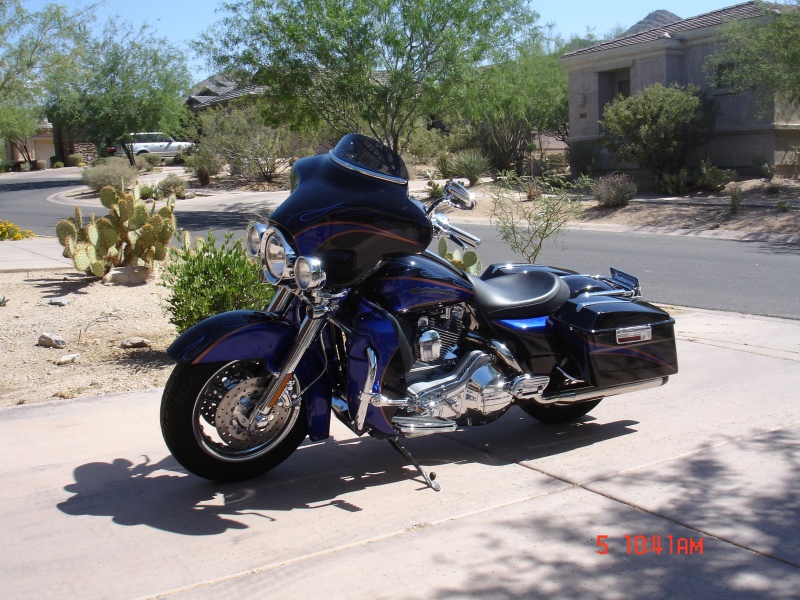 Candy Cobalt and Starlight Black with Copper and Blue pinstriping, and all CVO custom features. $26,000 Available to see in Scottsdale.