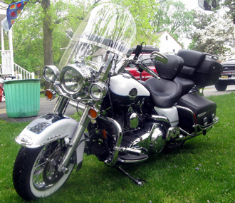 HOW MUCH RIGHT-ON CAN YOU PACK ONTO TWO WHEELS? Excellent Condition, Two-tone paint White Pearl and Black Pearl. Leather Tour-pack with chrome luggage rack, Nostalgic leather bags with Chrome bag guards. Tooled metal detailing on the fender, tank, and bags. Sleek new chrome tank console. Wide whitewall tires on profile laced wheels, Chrome Highway-pegs. But its timeless good looks are just an appetizer for the chromed-out Twin Cam 96™ V-Twin and six-speed gearbox. Add to that our rear air-adjustable suspension and new Brembo® brakes with ABS, plus a more comfortable handlebar and seat, standard electronic cruise control and a new far-ranging 6-gallon gas tank and Security System, 100 Watt Stereo with MP3 input jack, Rider Back-Rest. You have exactly what you need to go out and chase some wind. Serious Inquiries Only! Located in Pompton Plains, New Jersey 973-452-9024 Leave Message I will return your call.