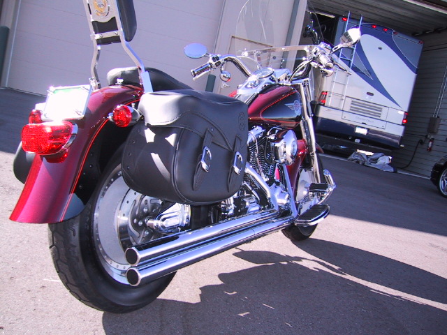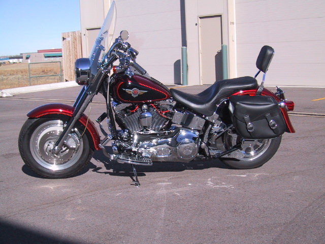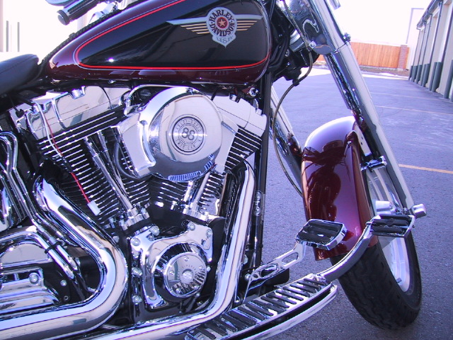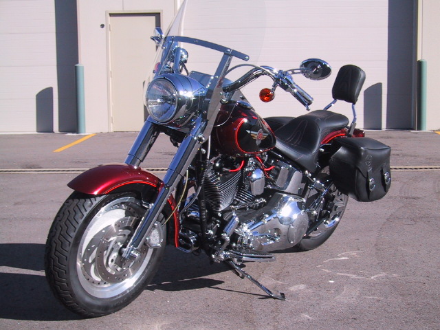 2001 Harley Davidson Fat Boy FLSTFI fuel injected, fully customized with tons of chrome and accessories, and better than new. It only has 4,269 inmaculate miles. Always garaged and under HD cover, and never used in the wet. Always maintained by Mile High Harley Davidson, even when not used, with oil changes every 1000 miles. Factory burgundy and black. This bike was my baby but as you can see from the mileage, I was not able to use it and must sell it to an appreciating buyer.