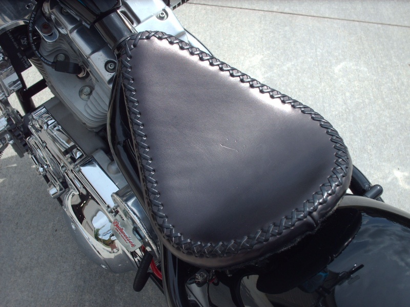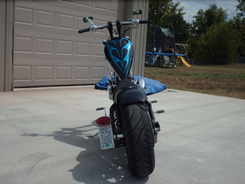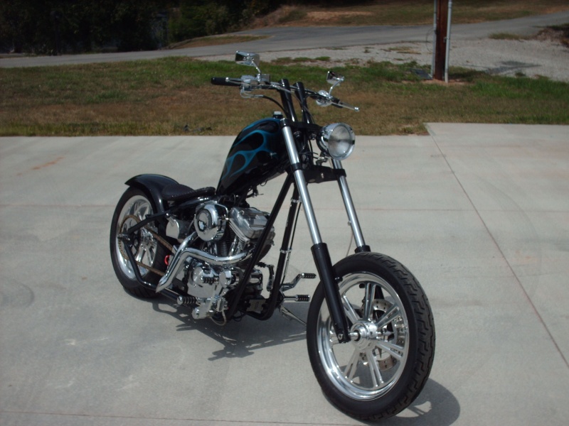 THIS BIKE WAS BUILT FROM A CLEAN TITLE HD SPORTSTER, THE STOCK NECK WAS RE-USED ON THIS CUSTOM BUILT FRAME. IT RETAINS THE ORIGINAL HD VIN AND IS TITLED AS A SPORTSTER. THE ODOMETER READ 8574 WHEN THE BIKE WAS TORN DOWN 2 YEARS AGO, SINCE THEN THE BIKE HAS BEEN RIDDEN NO MORE THAN 500 MILES. OTHER THAN THE MOTOR/TRANNY AND THE NECK, EVERYTHING USED IN THIS BUILD WAS BOUGHT NEW. 6 OVER FRONT WITH A 38 DEGREE RAKE. 8 INCH RISERS, POWDERCOATED FRAME, LOWER FRONT FORKS, TRIPLE TREES AND RISERS, BIKE HAS ALUMINUM KNURLED GRIPS. CUSTOM FABBED OIL TANK AND SEAT PAN, SEAT IS CUSTOM LEATHER AND HAND STITCHED. DUPONT BASE/CLEAR PAINT ON TANK AND FENDER. CUSTOM GAS CAP ON THE WCC VILLAN TANK. DOES NOT HAVE TURN SIGNALS, HORN OR SPEEDOMETER. 19 INCH FRONT 90/90 TIRE AND 18 INCH REAR 200 TIRE, POLISHED WHEELS WITH STAINLESS ROTORS. SANTEE LAF PIPES. SEAT PAN HAS DUAL SHOCKS TO HELP WITH THE RIDE (THEY REALLY DO HELP!)) WHEN THE FRAME WAS POWDWECOATED AND THE COATING WAS PUT ON TOO THICK AND COVERED THE VIN. THE AREA WHERE THE VIN IS LOCATED HAD TO BE STRIPPED DOWN SO THE VIN WAS CLEARLY VISIBLE, I HAVE TAKEN PICTURES OF THIS AREA, IT COULD BE TOUCHED UP WITH BLACK PAINT TO MAKE LOOK BETTER BUT WILL BE LEFT AS IS TO AVOID ANY REGISTRATION OR LICENSING PROBLEMS. ENGINE NUMBER MATCHES VIN AS WELL.