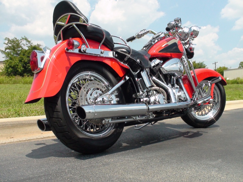 UP FOR SALE IS A EXTREMELY LOADED 2003 HARLEY DAVIDSON HERITAGE WITH A LONG LIST OF EXTRA'S. THIS BIKE HAS NEVER BEEN WRECKED OR LAID DOWN. JUST THE LOOK OF THIS BIKE WILL MAKE YOUR HEART POUND WITH EXCITEMENT, THEN THE POWER COMES IN TO PLAY AND YOUR HOOKED. HERE IS THE LIST OF PARTS THAT MAKE THIS BIKE UNIQUE STARTING FROM THE FRONT WORKING BACK: -CHROME DNA 80 SPOKE WHEELS -CHROME HARLEY ROTORS -CHROME HARLEY FRONT CALIPER -CHROME CALIPER ARMS -STEEL BRAIDED THROTTLE CABLES -STEEL BRAIDED CLUTCH AND BRAKE LINES -CHROME SPOT LIGHTS -CHROME SPOT LIGHT VISORS -1 1/2" CHUBBY BEACH BARS WITH RISORS -CHROME CONTROLS -CHROME BRAKE AND CLUTCH MASTER CYLNDERS -RETRO HARLEY GRIPS -CUSTOM ART DECO PAINT SET -CHROME LOW PROFILE GAS CAP AND DIGITAL FUEL GAUGE -HARLEY TACH/SPEEDO COMBO -CHROME HARLEY FLOORBOARDS -CHROME FLOORBOARD BRACKETS -CHROME INNER PRIMARY -CHROME HARLEY SLIM MOUNT HIWAY PEGS -CHROME VOLTAGE REGULATOR -CHROME TAPPET COVERS -CHROME CENTER CASE COVER -CHROME HARLEY PASSENGER PEGS -CHROME EXHAUST BRACKETS -CHROME REAR BRAKE CALIPER -CHROME PULLEY COVER -CHROME BELT GUARD -CHROME SWINGARM -RETRO PASSENGER DETACHABLE BACKREST IF I MISSED ANY EXTRA CHOME LET ME KNOW. NOW FOR THE PERFORMANCE PARTS: -95CI BIG BORE KIT -ADJUSTABLE HARLEY PUSHRODS -HARLEY 257 CAMS -SCREAMIN EAGLE HI COMPRESSION HI FLOW HEADS WITH MANUAL COMPRESSION REALEASES -SCREAMIN EAGLE STAGE 1 RETRO AIR CLEANER -HI FLOW OIL PUMP -OIL COOLER -BAKER 6 SPEED TRANSMISSION THIS BIKE SCREAMS!!!!!!!!!!!!!!!!!!!