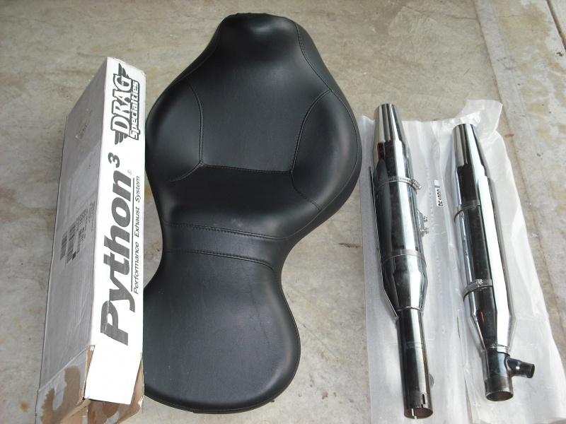 This bike is black with Python exhaust, stock exhaust is included in the sale (See Photo). Sequential Port Injection. Extra chrome has been added; 3" extension foot pegs, foot pegs, hand grips, sprocket cover, turn signal covers, voltage regulator. It also has an added backrest and an additional seat, which are included.