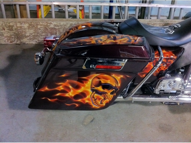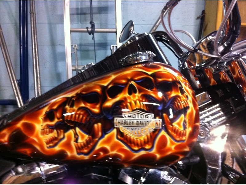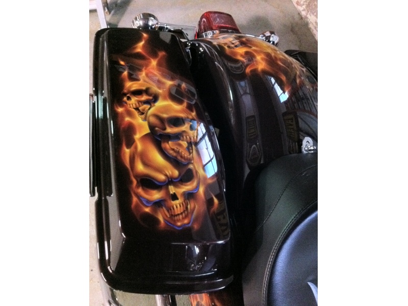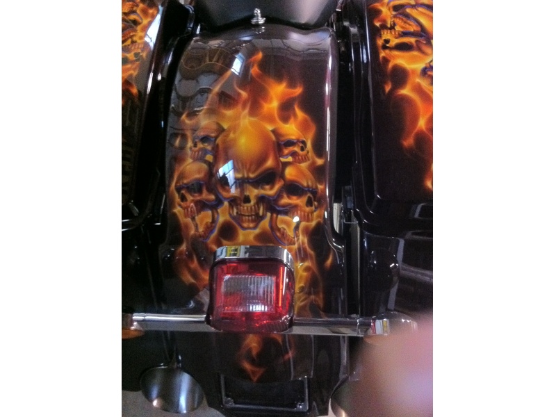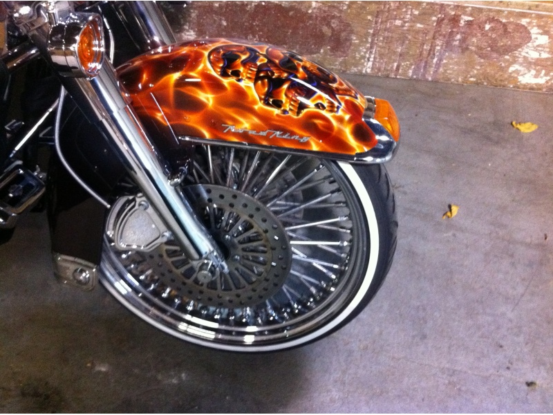 2007 Custom Road King, this bike has heated hand grips 21 inch big fatty front wheel 80 spoke. Complete engine chromed out to the max. Skull paint job like no other real show stopper over 12,000 dollars in paint alone this bike is one of a kind. Also included in this price I am going to throw in a Harley davidson trailer 7x 18 v nose brand new tandem axle trailer woth e track system included with wheel chocks included the trailer is white with 3 huge harley logos on each side. This is a deal you would be stupid to walk away from. The trailer alone is worth 9000 dollars plus. Pics will be available shortly.