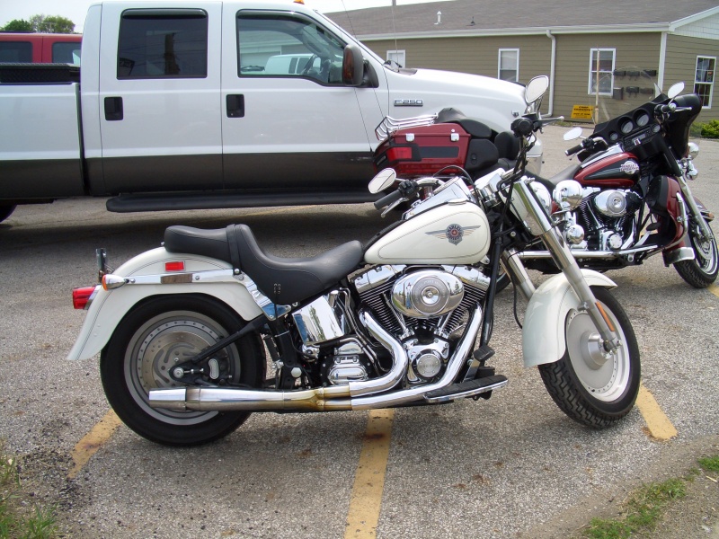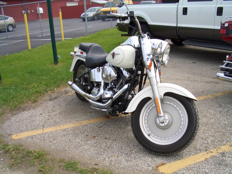 This 01 fatboy is first of the factory fuel injection. It has been kept in a climet controled envionment and is absolutly immaculate. Accessories include: fat tire kit, thuder header, necell headlight with passing lamps. Color is pearl white with only 9,800 miles.