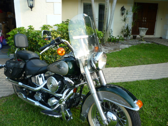 Mystique Green & Platinum Silver color - only 5,885 miles Garaged Kept,all Original, Detachable Windshield. FLSTN - Harley-Davidson produced this model in limited numbers from 1993-1996. The FLSTN was only available in one color combination for each year. (A different color combo representing each year). My '96 is one of 3,831 Heritage Softail Nostalgia's produced that year, the colors chosen for 1996 are Platinum Silver & Mystique Green.